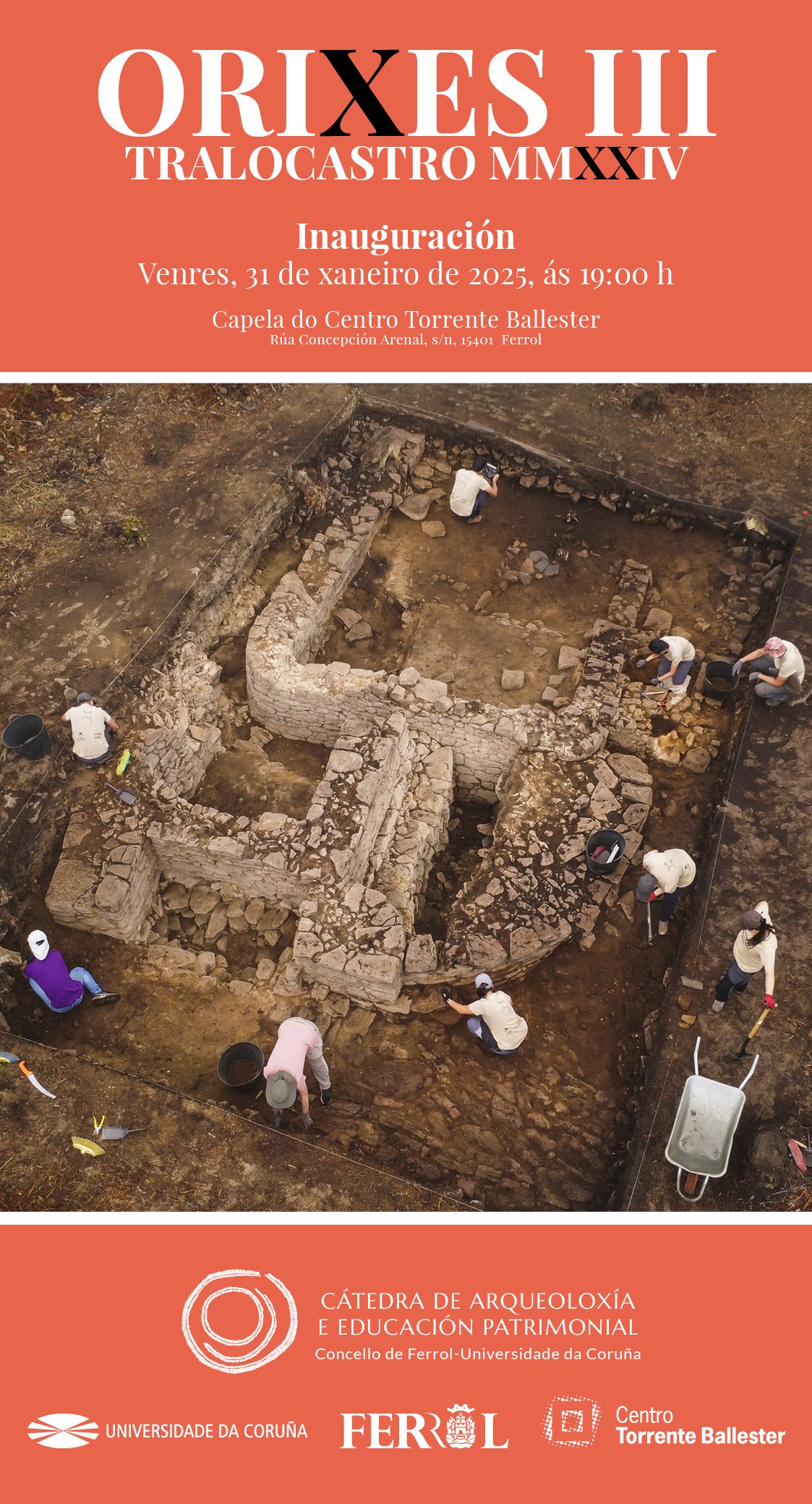 A Cátedra de Arqueoloxía e Educación Patrimonial, creada recentemente de forma conxunta pola Universidade da Coruña (UDC) e o Concello de Ferrol, inicia oficialmente a súa actividade coa inauguración da exposición Orixes no centro cultural Torrente Ballester da rúa Concepción Arenal. A exposición propón un percorrido polo «Ferrol castrexo», poñendo o foco nos distintos enclaves do municipio, as intervencións arqueolóxicas que se levaron a cabo ata o momento e algunhas das accións previstas no marco da cátedra, como a escavación do castro de Esmelle.