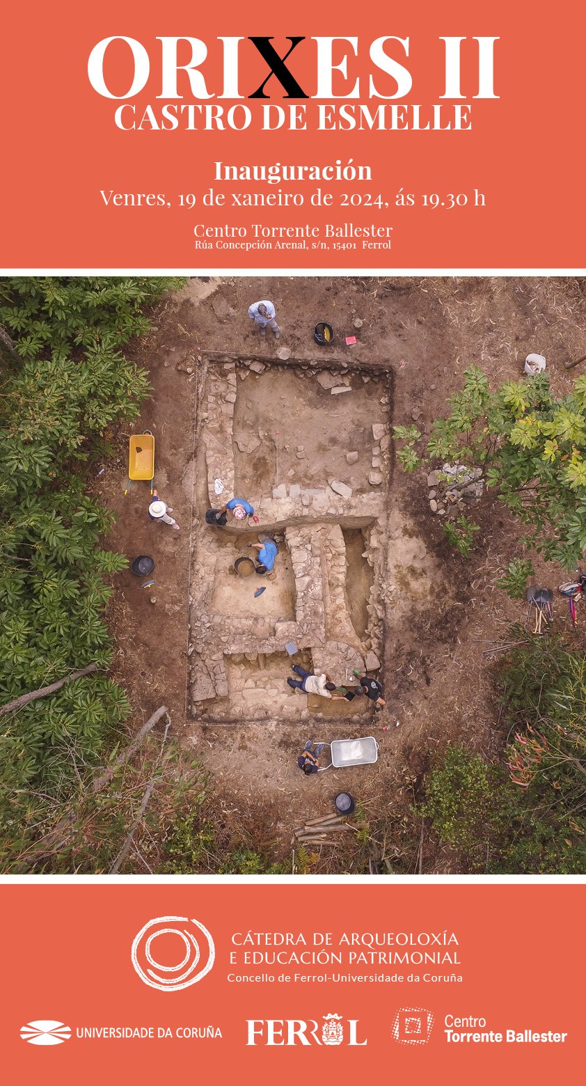 Despois de “Orixes I. Ferrol castrexo”, do 19 de xaneiro (inauguración ás 19.30 h) ao 17 de marzo o Centro Torrente Ballester, de Ferrol, acollerá a exposición temporal “Orixes II. Castro de Esmelle”, organizada pola Cátedra de Arqueoloxía e Educación Patrimonial Concello de Ferrol-UDC. A mostra consta dun audiovisual, de paneis explicativos e de vitrinas nas que se mostrará aos visitantes algúns dos achados (cerámica, metais, obxectos de pedra etc.) realizados no castro ferrolán de Esmelle, coñecido como Tralocastro, durante a escavación arqueolóxica desenvolvida o pasado verán.